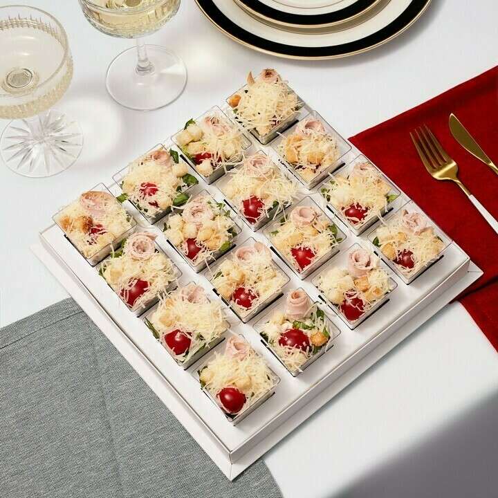 Любимый многими салат «Цезарь», приготовленный по традиционному рецепту. Нежнейшее обжаренное куриное филе на подушке из листьев хрустящего романо дополнено сочными помидорами черри, золотистыми чесночными гренками и пикантным тёртым сыром. В качестве заправки используется классический соус из анчоусов, яичных желтков, чеснока, дижонской горчицы, оливкового масла extra virgin с капелькой лимонного сока, вустерширского соуса и табаско.