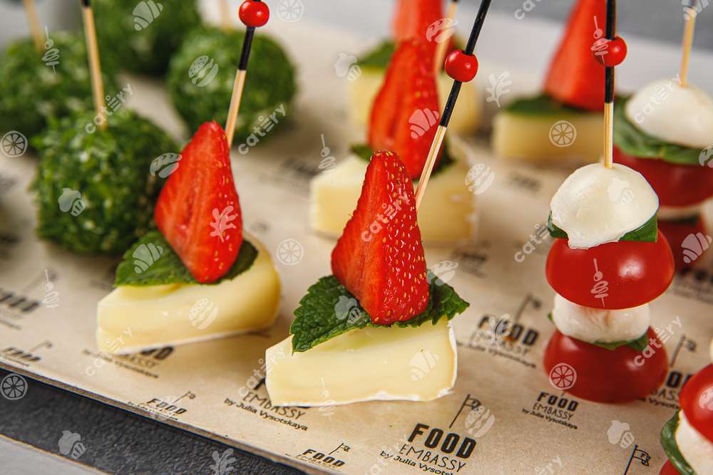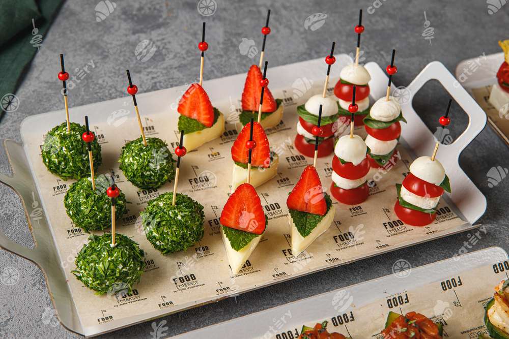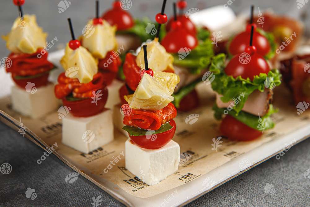 — Канапе с мини моцареллой, томатом черри и базиликом — 5 шт.