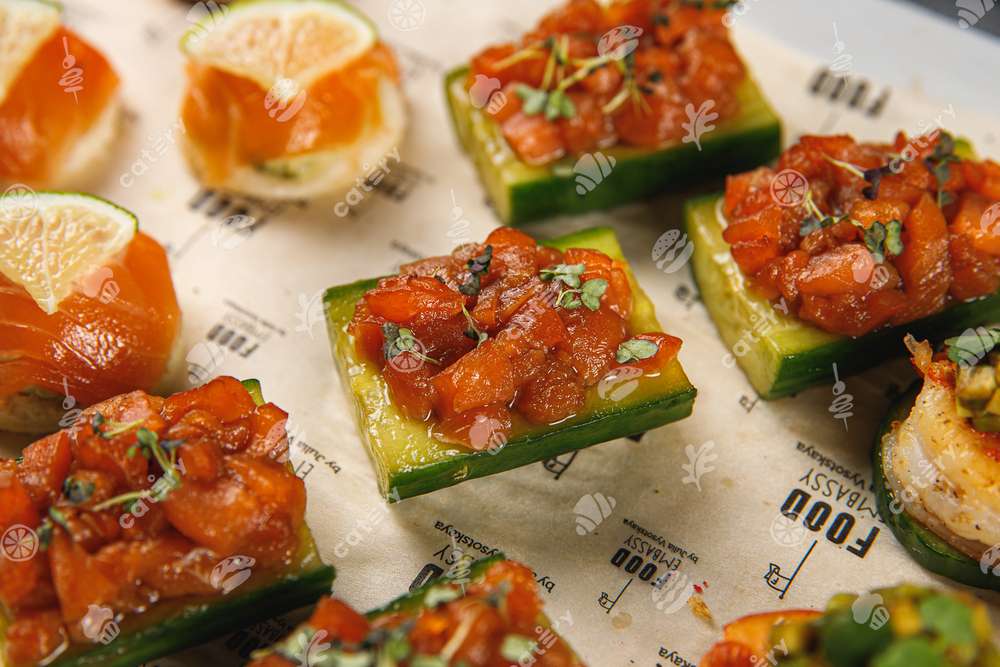 — Маринованный огурчик с тар-таром из форели — 5 шт.