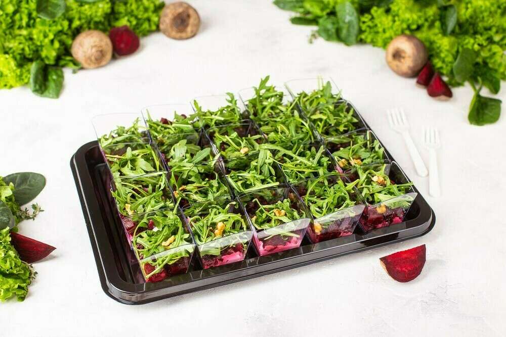 Этот салат — праздник вкуса: бархатистый творожный сыр со сливками обволакивает чувства, сочная свекла радует сладостью, а рукола привносит острую свежесть. Грецкие орехи добавляют хрустящую насыщенность. Масло, яблочный уксус и бальзамический крем с кориандром сплетают все в изысканную гармонию! 20 порций по 40 г.
