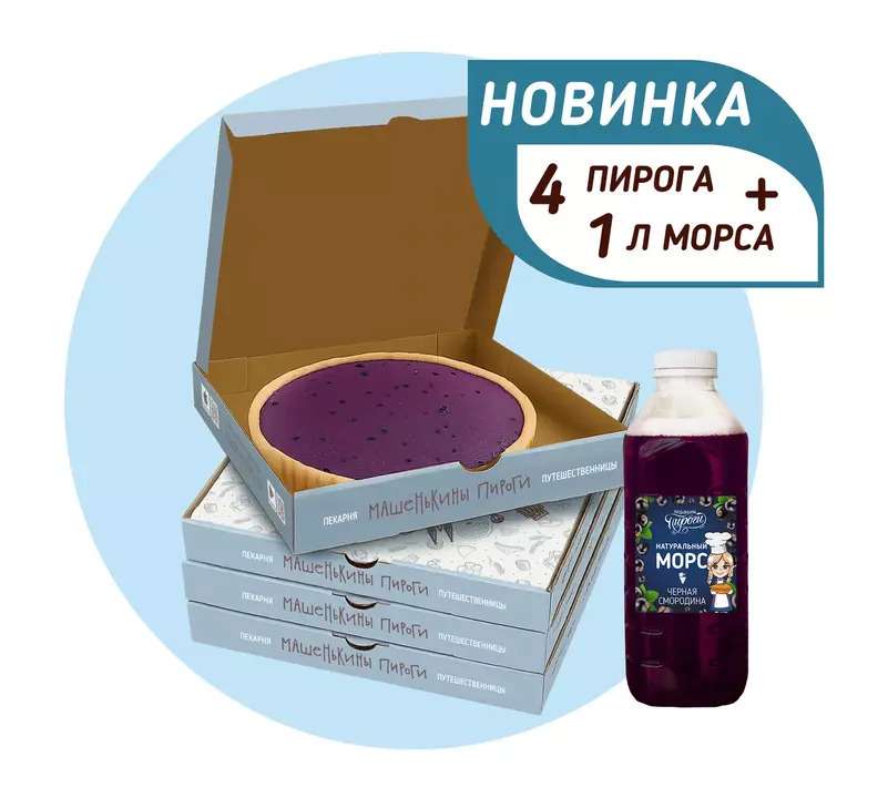 В набор входят: — Греческий пирог с творожным сыром и шпинатом; — Лионский киш с курицей и черри; — Финский пирог с натуральной лесной черникой; — Польский пирог с маком и творожным сыром.