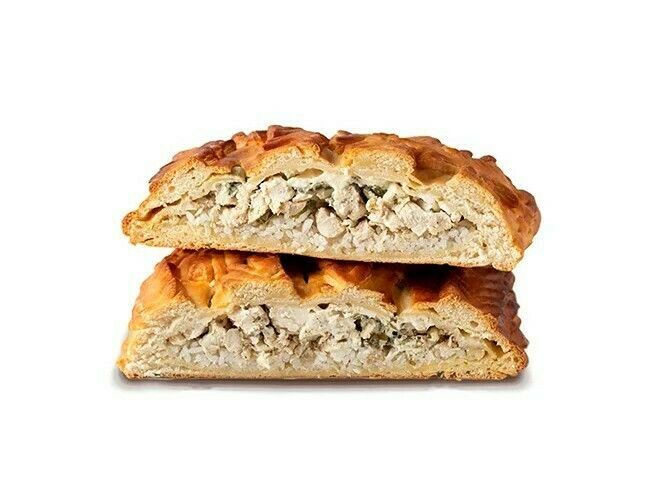 Состав: тесто на выбор (сдобное или слоено-дрожжевое), куриная грудка, рис отварной, морковь, лук репчатый, растительное масло, сметанный соус, петрушка, соль, перец черный молотый, яйцо куриное, вода, мука высший сорт.