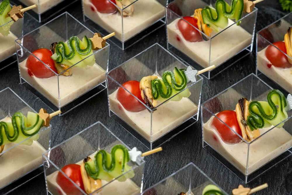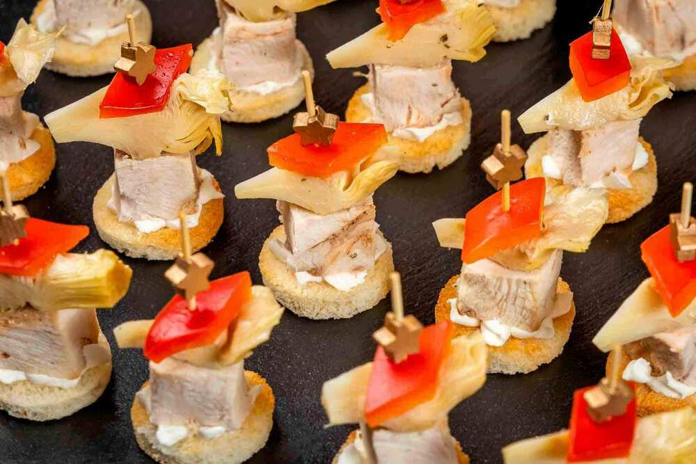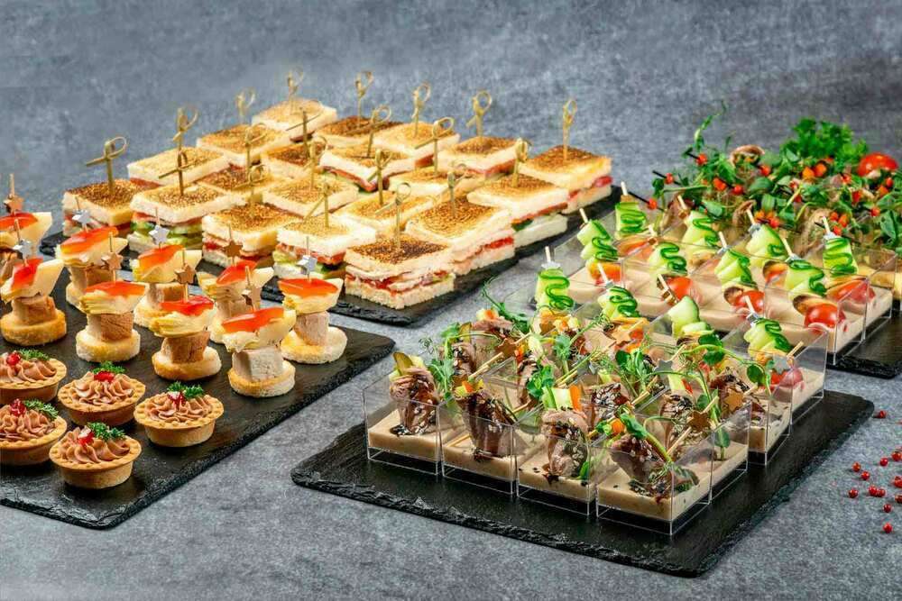 Готовое решение для мероприятия из 76 закусок для фуршета, деловой встречи или праздника. В составе веррины с бужениной, ростбифом и Анаго, мини-тарталетки с гусиным паштетом, канапе с артишоком и копчёной курицей, а также сэндвичи с лососем и курицей.
