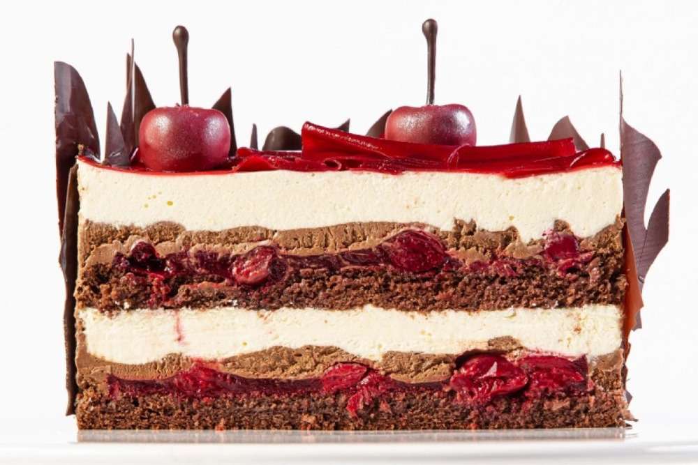 Состав: мука пшеничная, яйцо куриное, сахар, творожный сыр, молочные сливки 33%, молоко 3,4-6%, молочный шоколад 38%, темный шоколад 72%, ликер вишневый, вишня, какао натуральное, ваниль, пектин, желатин, агар-агар.