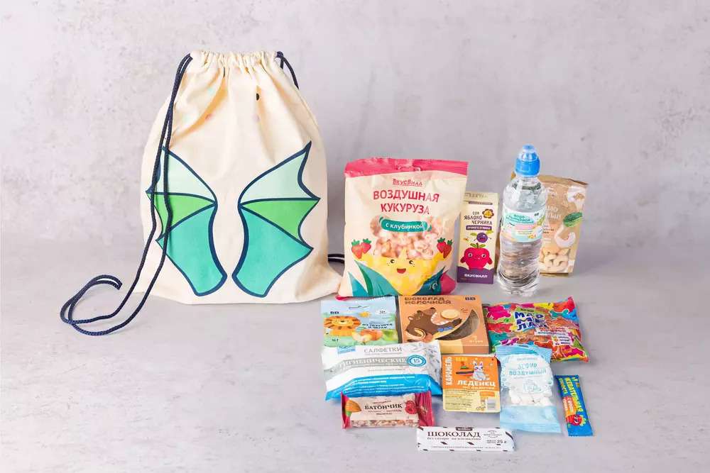 Детский набор может стать отличным подарком. В этом наборе мы собрали вкусности для всей семьи и полезные мелочи, без которых не обойдётся ни одна поездка: детские напитки, снеки, лакомства и антибактериальные салфетки в дорогу. И всё это — компактном рюкзачке с очаровательным рисунком, который удобно брать с собой. Практичный мешочек станет отличным местом для хранения на долгие годы.