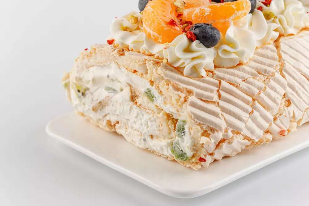 Меренговый рулет — это десерт, состоящий из тонкого слоя взбитых запеченных яичных белков, с тончайшей крустящей корочкой, и начинки из крема, фруктов или ягод. Нежный как облачко. Воздушный, нежный и изысканный, этот рулет словно создан для особенных моментов. Его утончённый внешний вид и очаровательная лёгкость наполнят ваш стол атмосферой настоящего торжества. Праздничный рулет дарит радость, объединяет близких и делает любое событие ещё более волшебным.